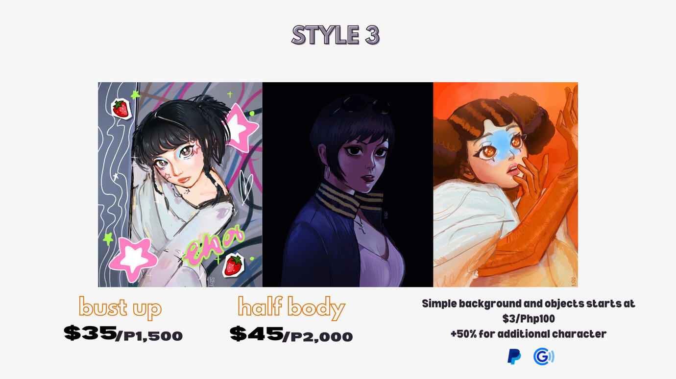no rush commissions please. i'm just borrowing my bf's pc, mine broke months ago and i can't afford to get it fixed. i can only work from sunday to thursday , maybe around 8 pm to 10 am, philippine time.